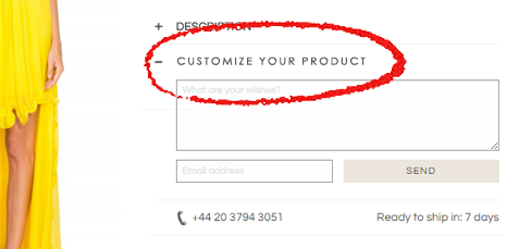 The Custom Made services allows you to modify anything you want on a product. You can choose to change the color, add an accessory, adjust the length and so on. Let your imagination run wild.