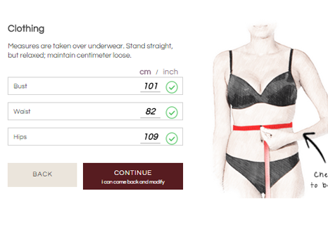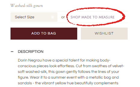 Click the Shop Made To Measure button then follow the instruction steps. If the custom button does not exist, this option is not available for the chosen product.